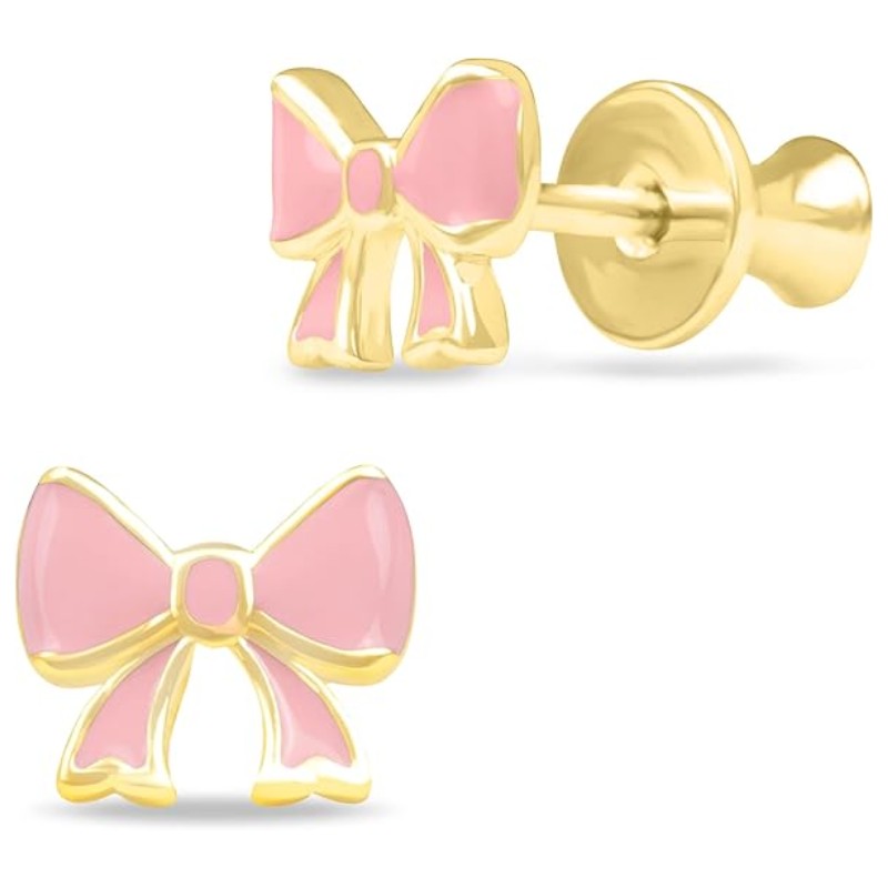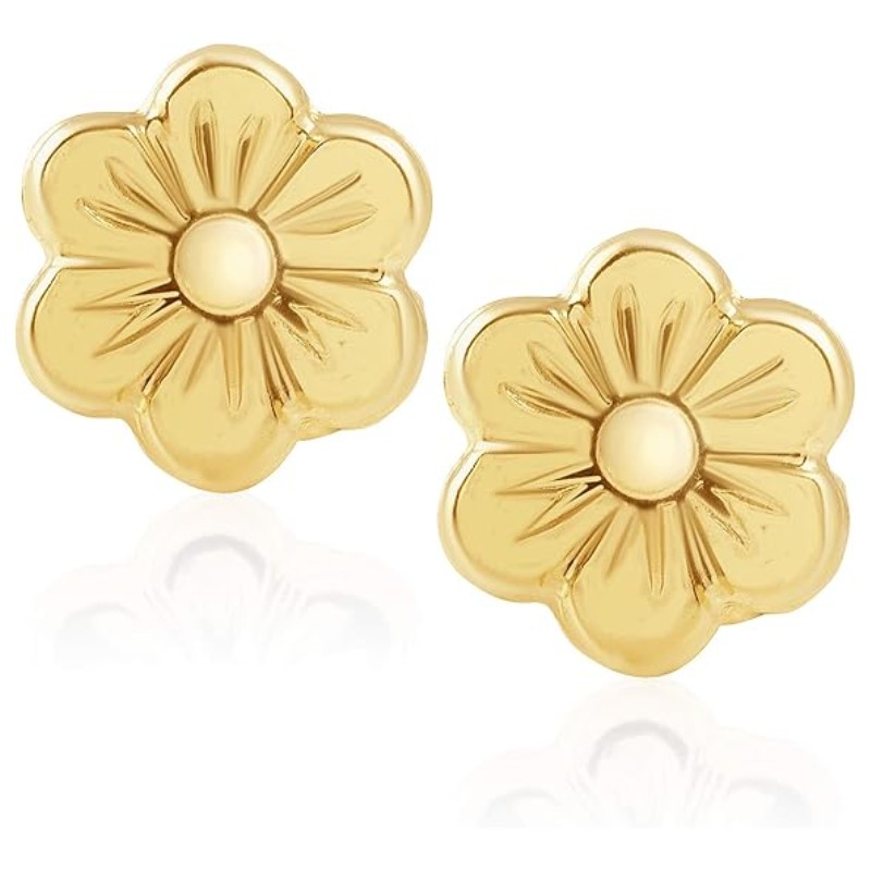Adorable 14K yellow gold stud earrings for girls, featuring stars, flowers, ribbons, and animal designs. Lightweight, hypoallergenic, and safe with secure screw-back closures. Perfect for newborns, toddlers, baptisms, baby showers, birthdays, or everyday wear. Durable, stylish, and thoughtfully crafted for little ears.