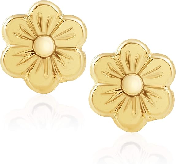 Adorable 14K yellow gold stud earrings for girls, featuring stars, flowers, ribbons, and animal designs. Lightweight, hypoallergenic, and safe with secure screw-back closures. Perfect for newborns, toddlers, baptisms, baby showers, birthdays, or everyday wear. Durable, stylish, and thoughtfully crafted for little ears.